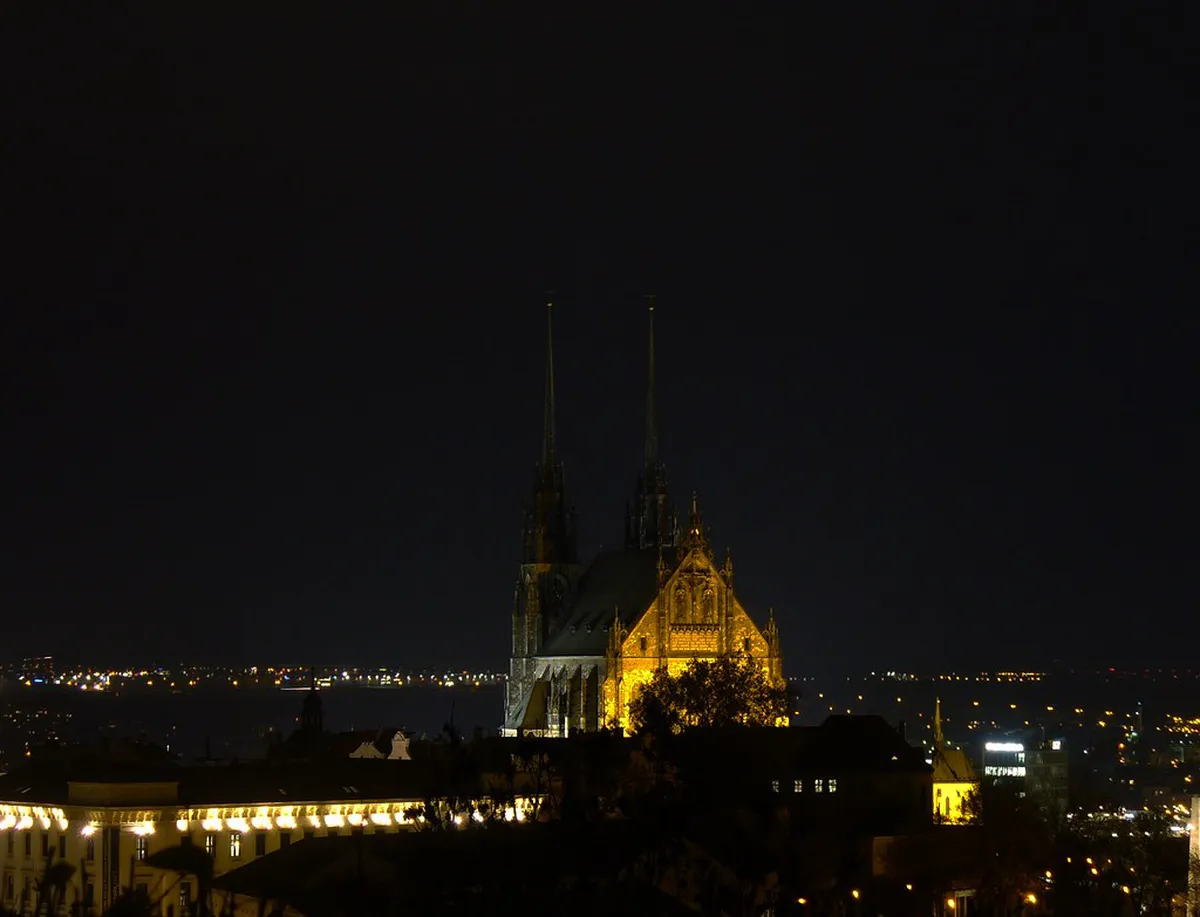 You can find the best angle to photograph Petrov Cathedral silhouette nearby. Look for the narrow streets leading up the hill. The contrast between old and new is striking. Visit the Go To Brno site for more.